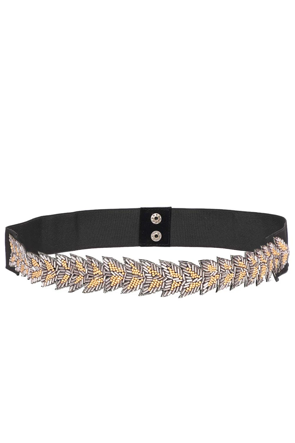 Glam up any outfit with this botanical beaded belt specially designed in grey & multi color. We have used the best velvet to craft this beautiful piece of art. With a snap button closure and comfy stretchable fabric, this belt can be easily fitted around your waist.