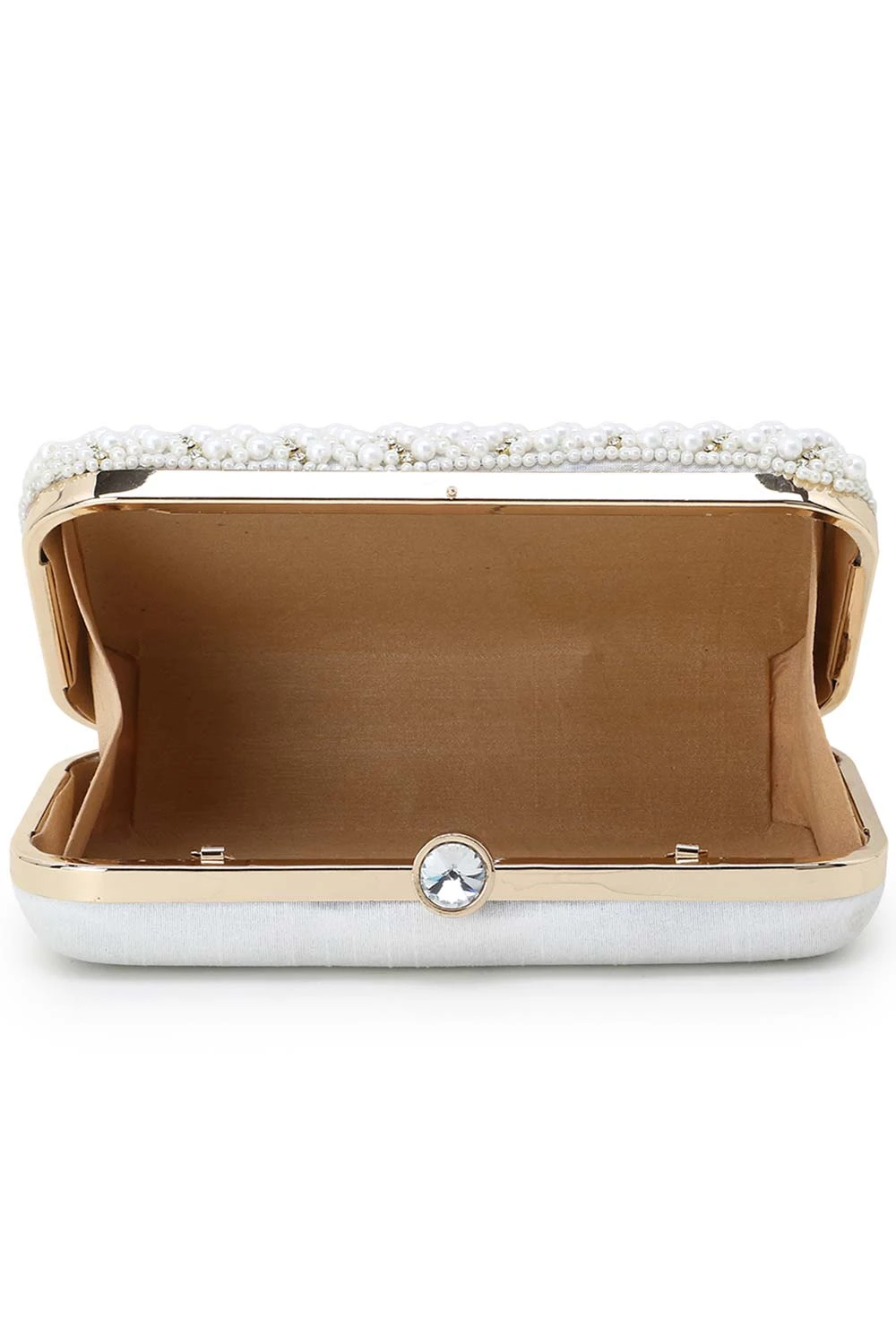 Be the star of the evening with this pretty clutch. Designed in white & gold color with durable faux silk & this clutch adds just the right amount of glamour to make you feel bold and confident about your attire. The design and chain is really sturdy too so you will never be afraid of it breaking apart. Secured with a click closure & you will find this clutch quite spacious to hold a phone & makeup and a wallet.