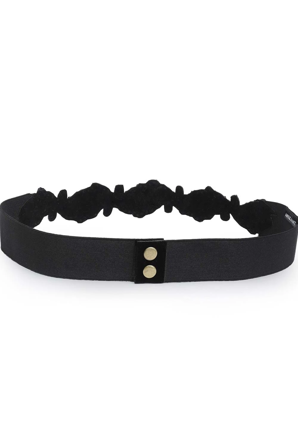 Get ready to buckle up your style with Anekaant’s Black Embellished Belt. It comes in a Velvet base with a Hand Embellished design and elegent push pin buttons & elastic that makes it easily adjustable for all waist sizes. Style this belt with your favourite pair of denims & baggy shirts or any classic dress to get a chic look.
