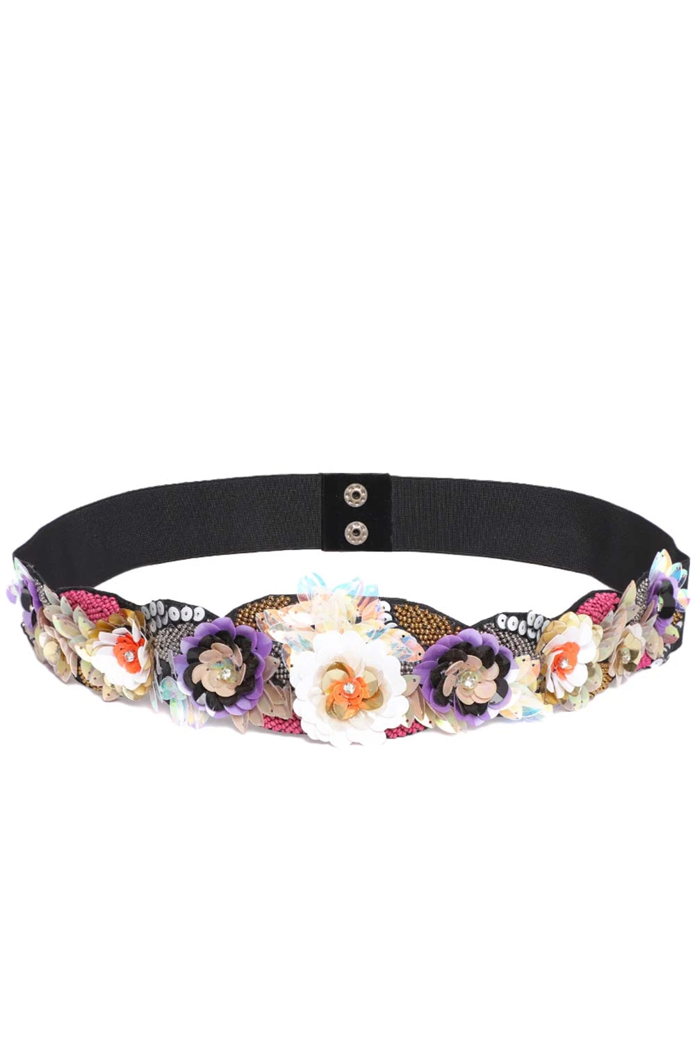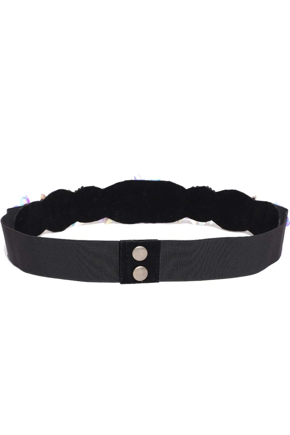 Glam up any outfit with Anekaant’s floral sequined work belt specially designed in multi color. We have used the best velvet to craft this beautiful piece of art. With a snap button closure and comfy stretchable fabric, this belt can be easily fitted around your waist.