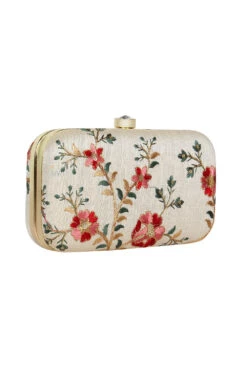 Designer Ethnic Off-white With Orange And Blue Floral Embroidery Clutch
