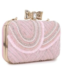 Designer Velvet Clutch In Pink With Floral Embroidery