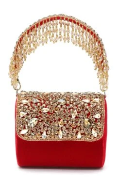 Designer Red &Gold Stone Work Embellished Velvet Purse Clutch