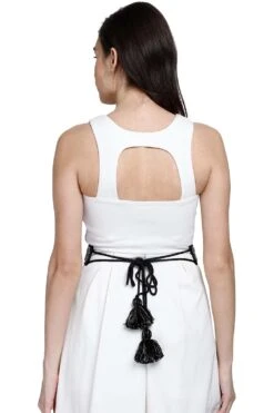 Braided Bead Work Saree Belt In Natural & Black