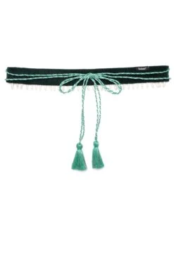 Geometric Bead Work Saree Waist Belt In Turquoise & Silver